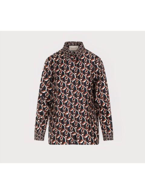 Gucci Women Jacquard Silk Shirt With Gg Cross