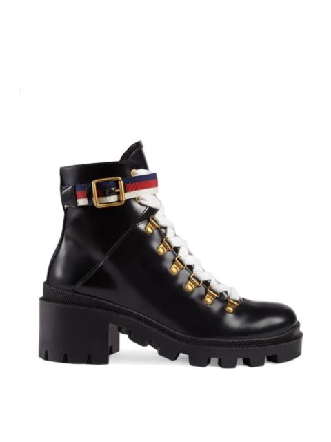 Gucci Sylvie Web Leather Ankle Boots