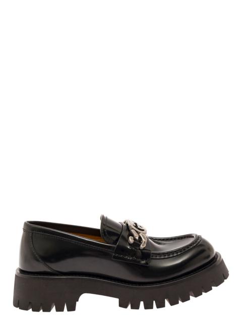 Gucci Women 'Jeanne' Black Loafers With Interlocking G Detail And Lug Sole In Leather Woman