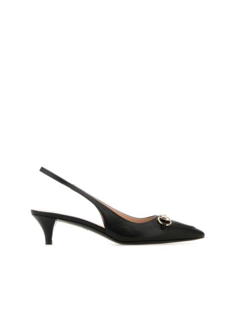 Gucci Women 'Signoria' Black Pumps With Logo Strap In Leather Woman