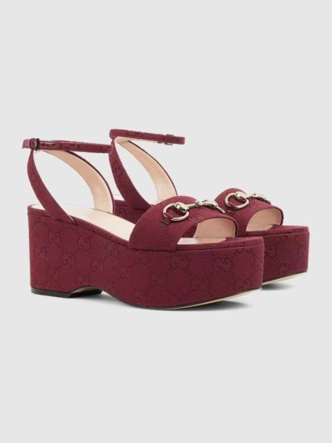 Gucci Interlocking G Platform Espadrilles in Ivory Canvas Ribbon Tie
