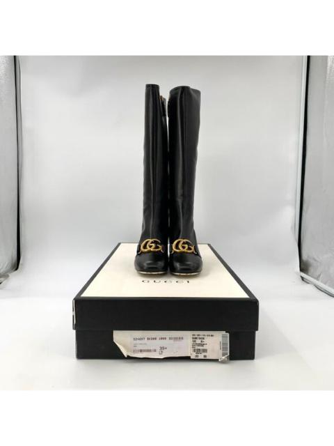 Gucci Black Leather Double G Gold Buckle Thick Heel Knee-High Boots Size 39.5 Wi