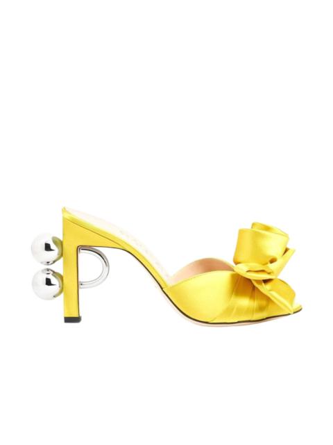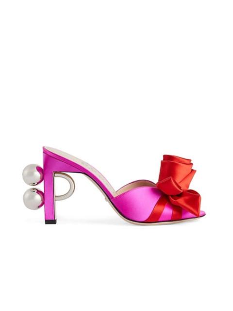 Knotted Metallic Leather Mid-Heel Bow Mule