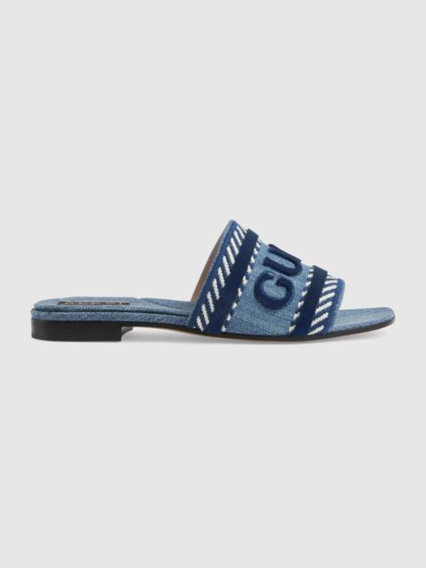Gucci Logo Denim Slide Sandals