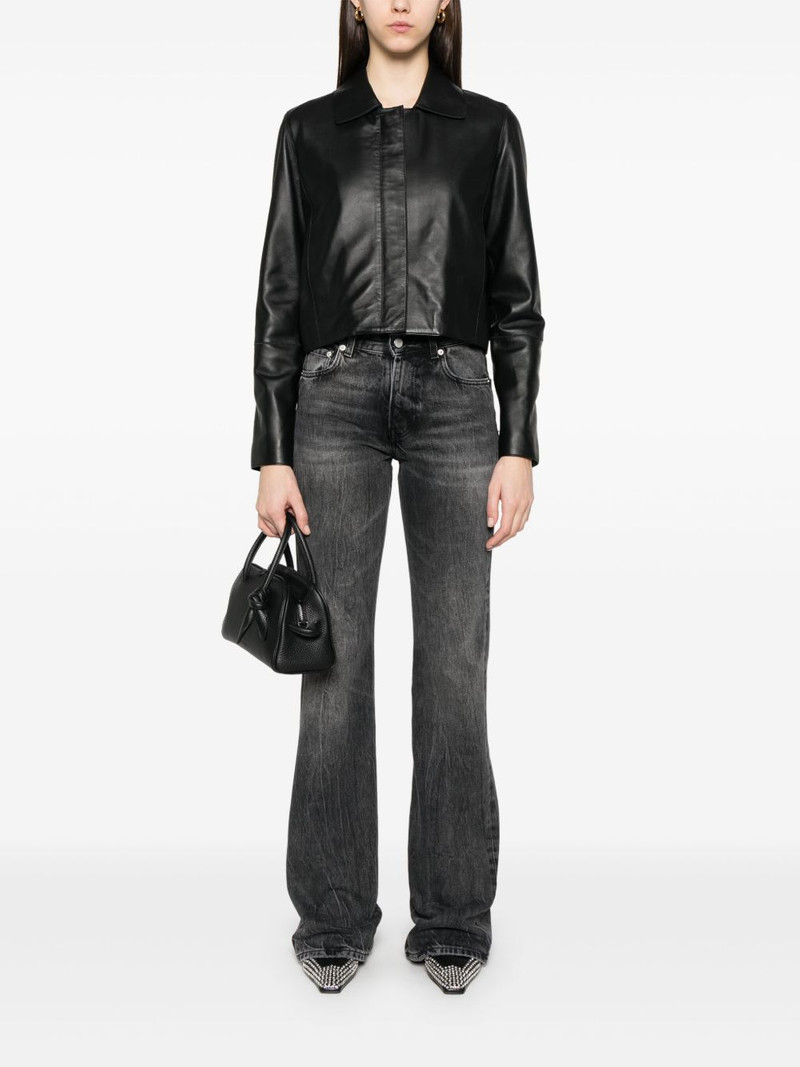 Korea Rigid Mid-Rise Flared-Leg Jeans white