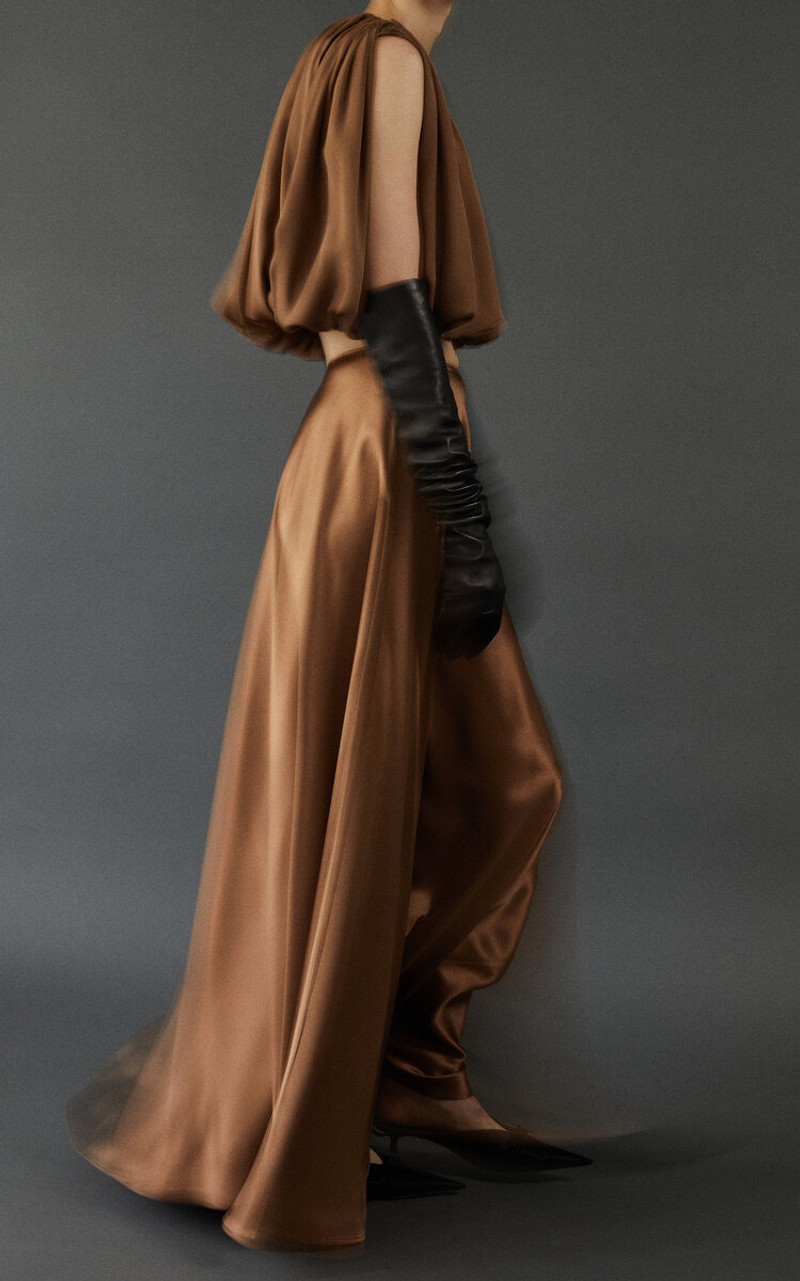 Exclusive Carmen Cape-Sleeve Silk Top ivory
