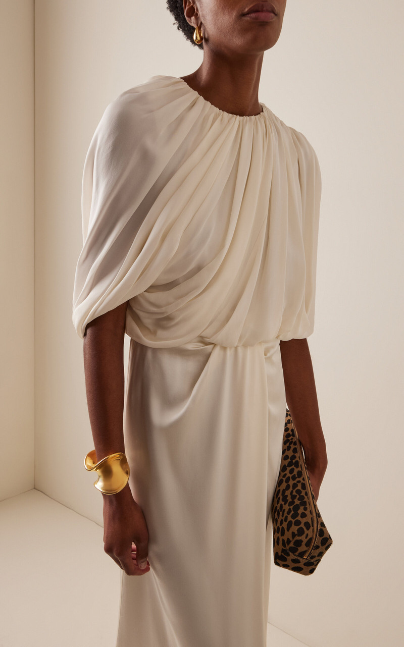 Barbara Gathered Draped Silk-satin Halterneck Blouse