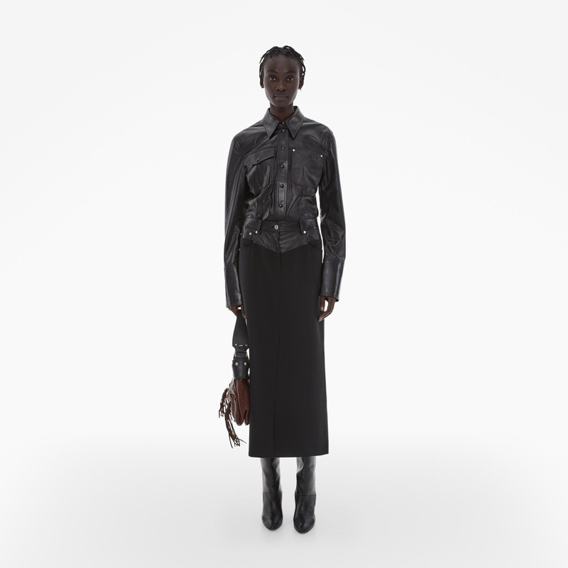 Explore the modern sophistication of Helmut Lang skirts, an essential part of our women's clothing collection. Helmut Lang skirts are known for their minimalist designs and sleek aesthetic, providing a versatile and timeless addition to your wardrobe. Each skirt is crafted with precision, using high-quality materials that symbolize the brand's commitment to luxury and innovative fashion.
