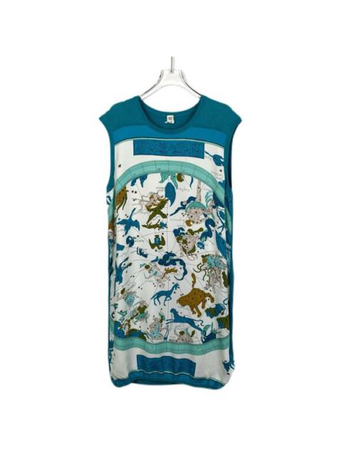 Hermès Blue Astrolabe Print Silk Sleeveless Knit Dress Size 40 Round Neck