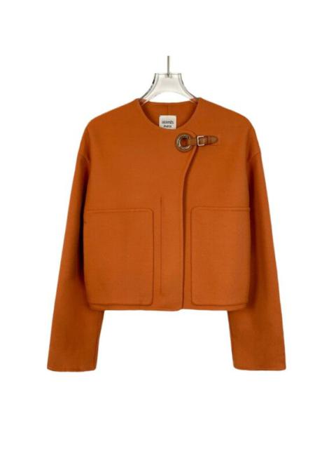 Hermès Paris Womens Wool & Cashmere Blend Orange Jacket With Buckle Detail
