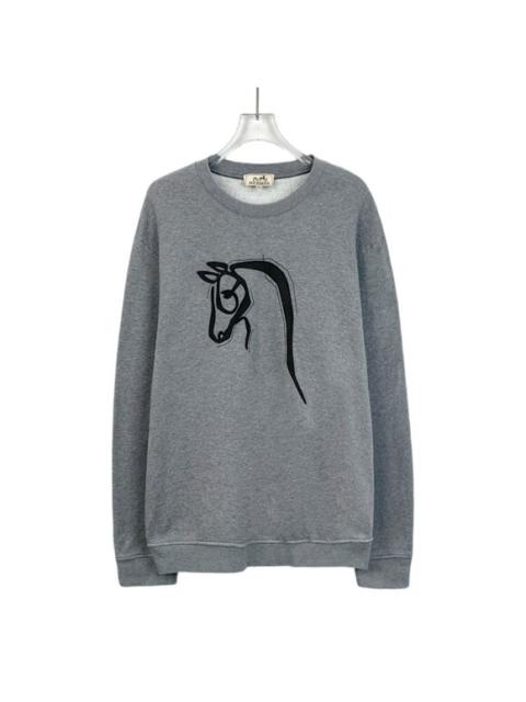 Hermes Gray Cotton Sweatshirt Horse Embroidery Medium Unisex