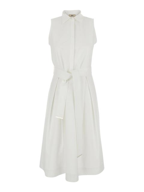 Herno Women White Sleeveless Dress With Classic Collar And Adjustable Belt In Tech Fabric Stretch Wo