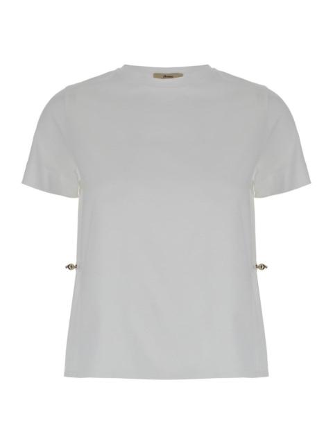 Herno Women White T-Shirt With Drawstring And Cut-Out In Cotton Woman
