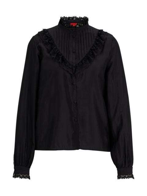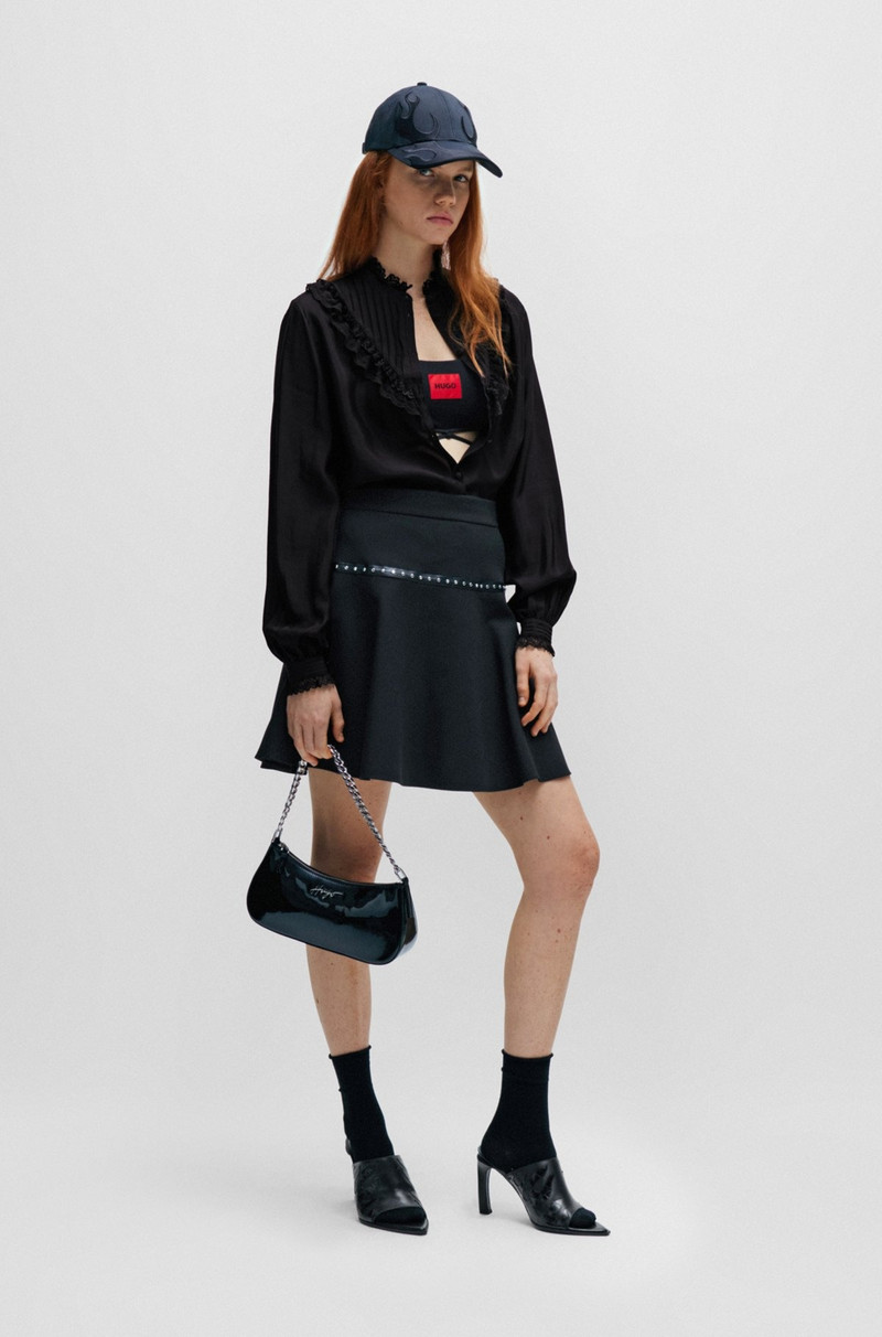 Elevate your wardrobe with HUGO tops, the epitome of contemporary women's clothing. Each top is a fusion of sleek design and youthful energy, crafted to make a statement in both casual and professional settings. Experience the artful blend of tailored cuts with relaxed fits, allowing you to express your unique style effortlessly. Our exclusive selection features a range of styles, from chic blouses to relaxed tees, all designed with premium materials and a modern aesthetic. Discover the versatility of HUGO tops, perfect for layering or standalone pieces that transition seamlessly from day to night. Embrace a fashion-forward approach that celebrates individuality while staying grounded in timeless sophistication. Shop now to find the latest trends that redefine modern elegance and comfort, sourced from authorized retailers and boutiques.