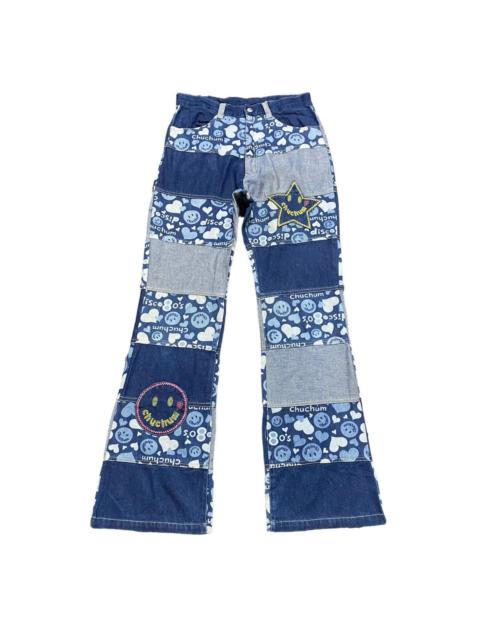 Chuchum Smiley Hippie Denim Patchwork Flare Pants