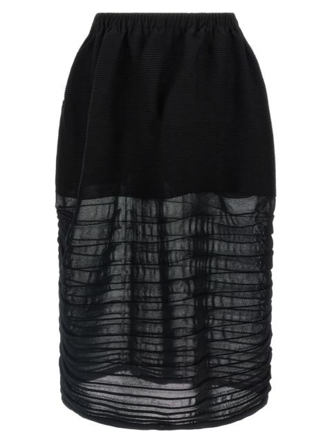 Explore the timeless innovation of ISSEY MIYAKE skirts, a standout in our exclusive range of women's clothing. Each ISSEY MIYAKE skirt is designed with a perfect blend of avant-garde aesthetics and functional elegance, ideal for those who value both form and function.