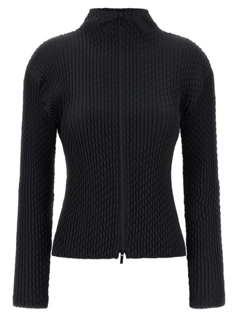 ISSEY MIYAKE PLEATED HIGH-NECK BUTTON UP CARDIGAN