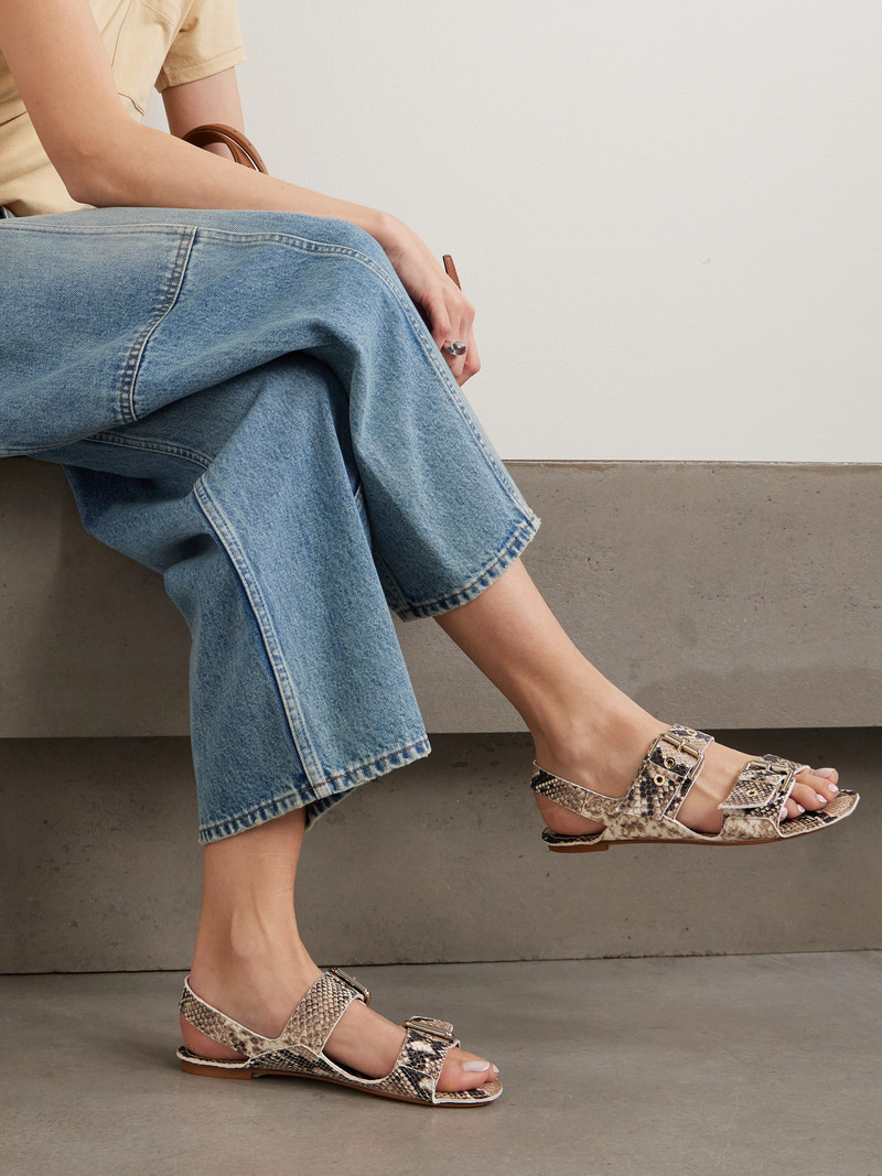 The Double Buckle Snake-effect Leather Sandals