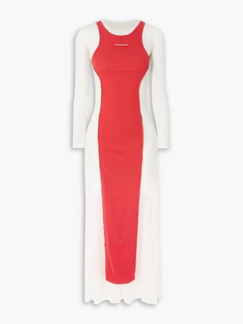 Layered ribbed cotton-jersey and mesh maxi dress