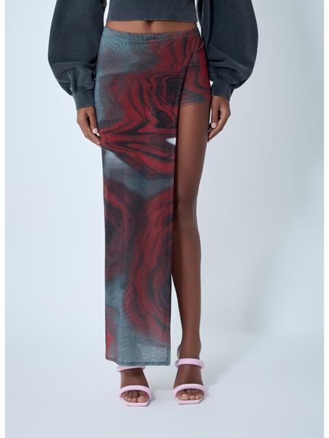 Jean Paul Gaultier Women Spiral Printed Mesh Long Skirt