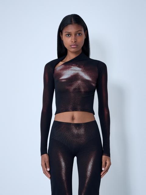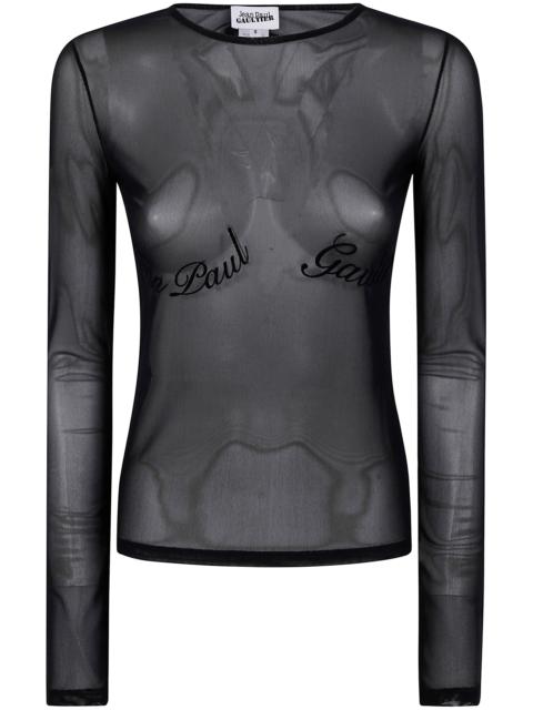 Jean Paul Gaultier Women Mesh Long Sleeves Top With Velvet Flock "Jean Paul Gaultier"