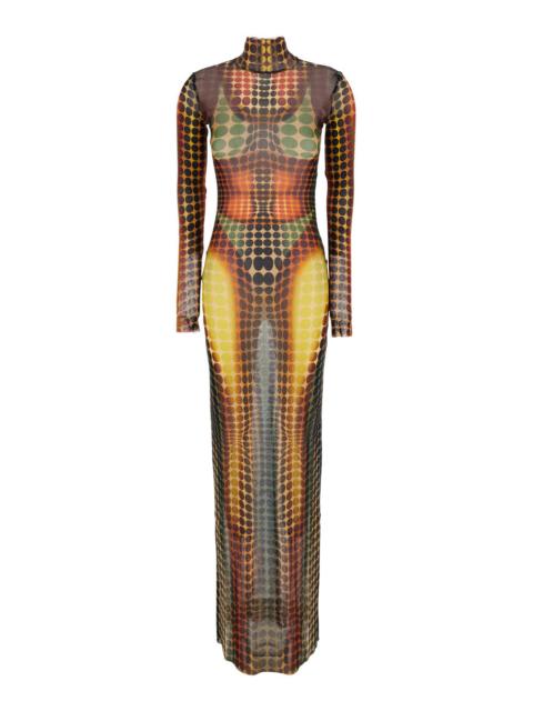 Jean Paul Gaultier Women Turtleneck Mesh Long Dress Printed "Pigalle"