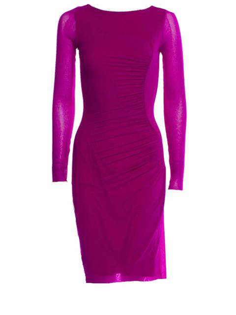 Purple Long Sleeve Ruched Waist Tulle Dress