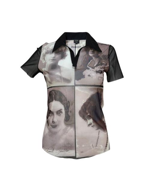 JEAN PAUL GAULTIER Spring Summer 2002 Portrait Photo Print Mesh Polo Shirt