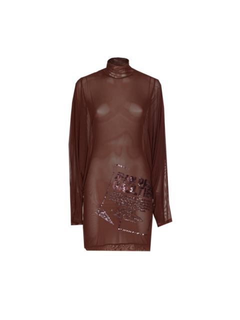 Jean Paul Gaultier Women Mesh Open Back Sleeveless Dress Velvet Flock "Jean Paul Gaultier"