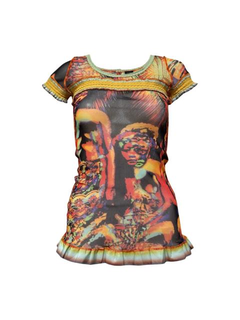 JEAN PAUL GAULTIER Spring Summer 2000 Psychedelic Print Mesh Frill Trim Top