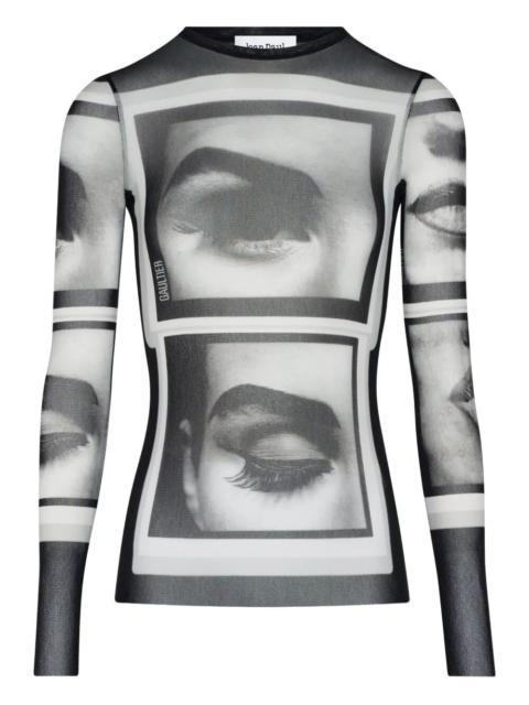 Jean Paul Gaultier Women Re-Edition : Mesh Longsleeve Top Printed "Eyes And Lips"