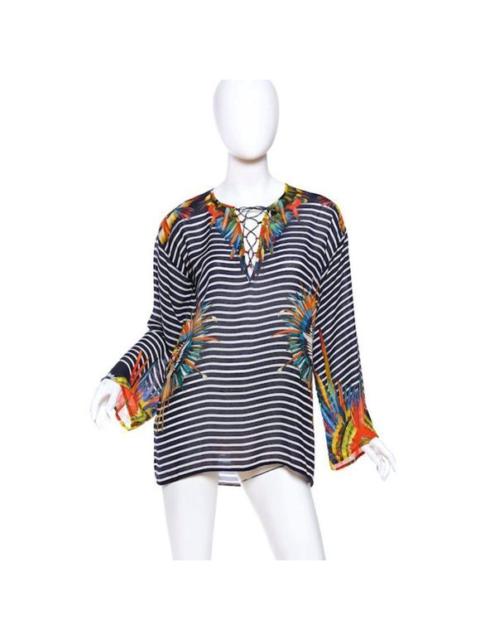 Vintage JEAN PAUL GAULTIER SOLEIL Striped Tunic w/Parrot Feather Printed Accents