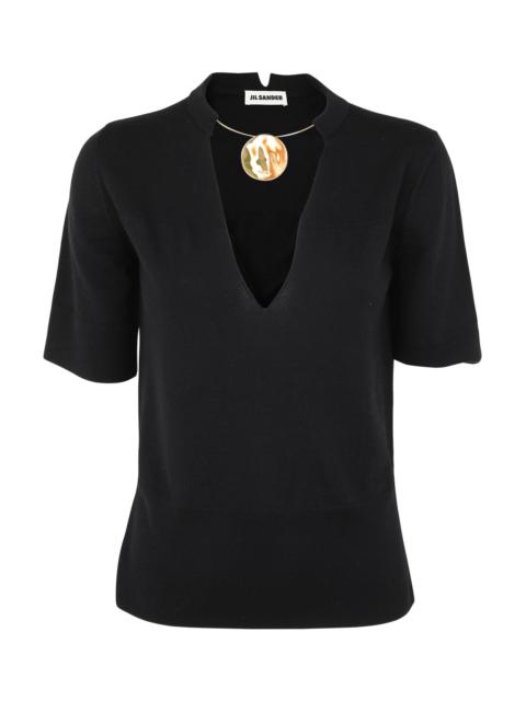 Jil Sander Women Crew Neck Short Sleeve Knit With Integrated Jewel Necklace