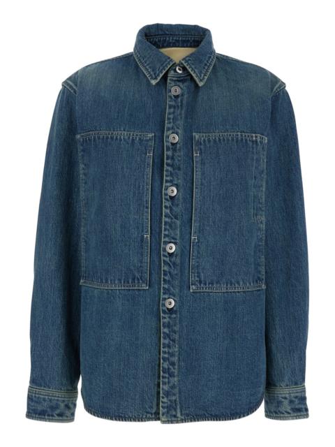Jil Sander Women Blue Shirt With Classic Collar And Logo Patch On The Rear In Denim Woman