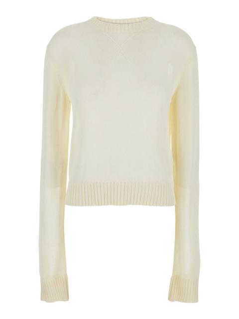 Jil Sander Women White Cropped Crewneck Sweater With Tonal Logo Embroidery In Cotton Woman