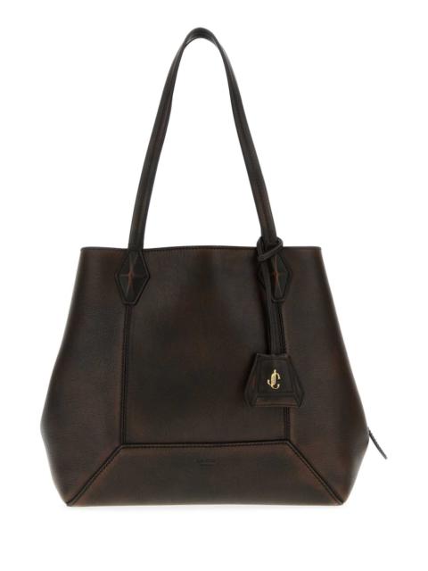 Jimmy Choo Women Dark Brown Leather Diamond Shopping Bag