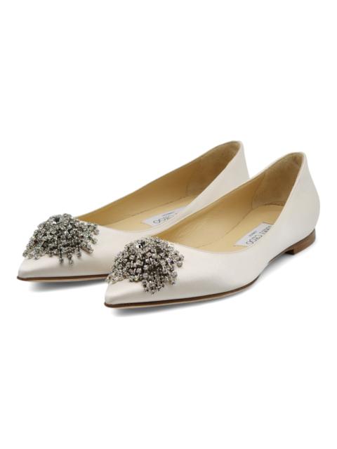 Jimmy Choo Love Embellished Satin Flat Ballerina Shoes in White (36.5)