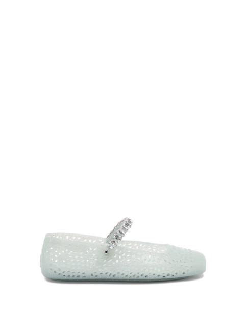 Jimmy Choo Love Embellished Satin Flat Ballerina Shoes in White 36.5 6.5 $895