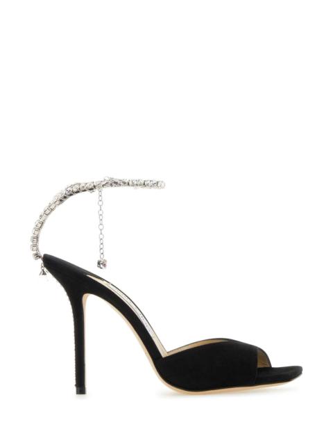 Jimmy Choo Women Black Suede Saeda 100 Sandals