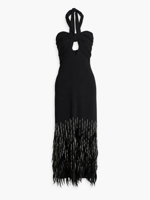 Fiesta Costera embellished crepe halterneck midi dress