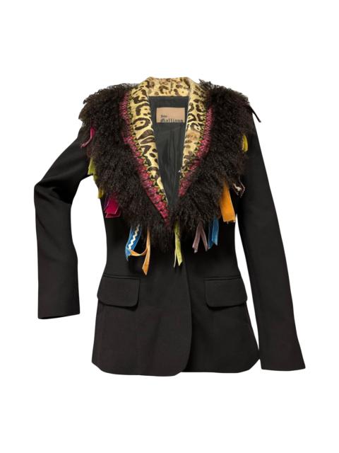 JOHN GALLIANO Fall Winter 2002 Leopard Printed Fur Collar Fringed Blazer