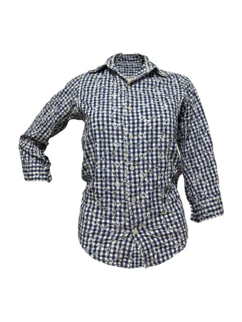 JUNYA WATANABE Spring Summer 2009 Embroidered Gingham Checkered Three-Quarter Sleeve Shirt