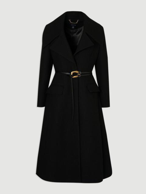 Plus Size Wool Investment Notch Neck Belted Detail Tailored Maxi Coat