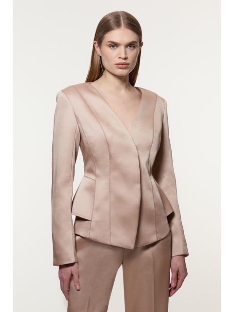 Structured Viscose Satin Stitch Detail Tailored Peplum Blazer