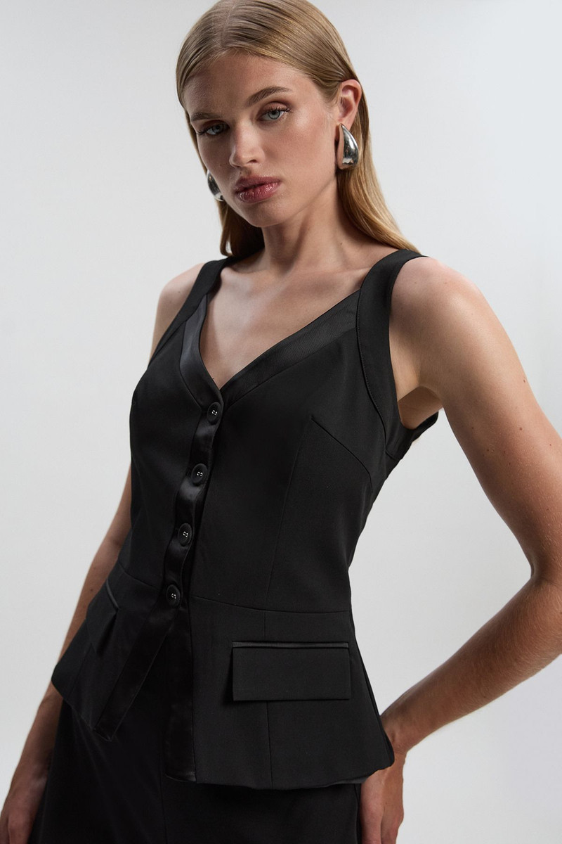 Compact Stretch Tailored Button Bodice Jumpsuit