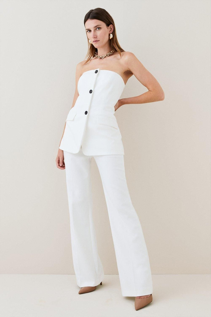Compact Stretch Bandeau Tailored Wide Leg Jumpsuit