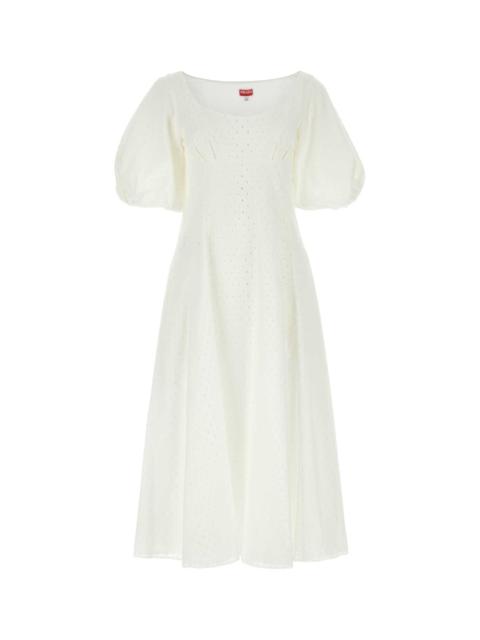 Kenzo Ladies Off White Broderie Anglais Embroidered Midi Dress