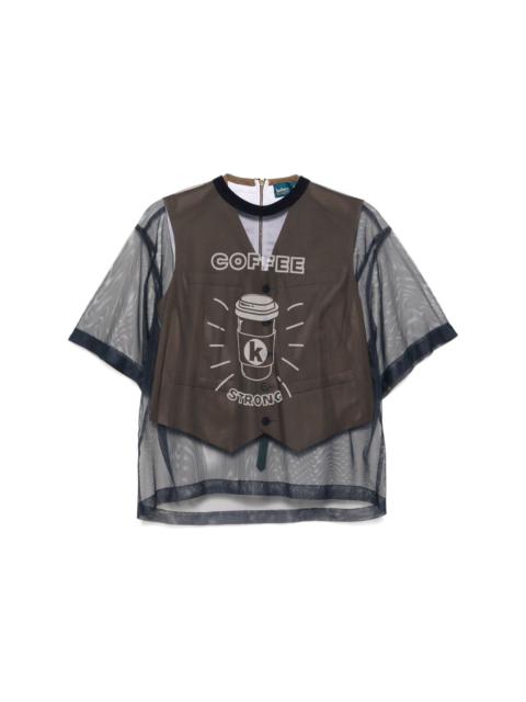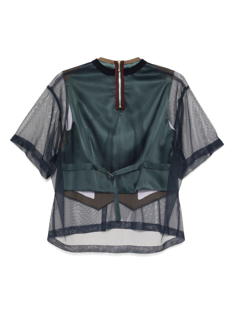 tulle layered camp collar shirt