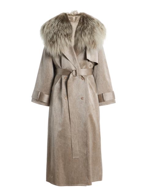 Satin Double Breasted Coat With Fur