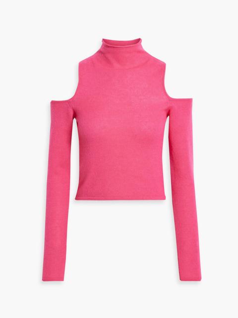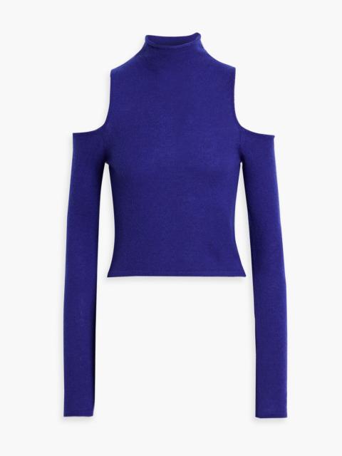 Cold-shoulder cashmere and silk-blend turtleneck sweater